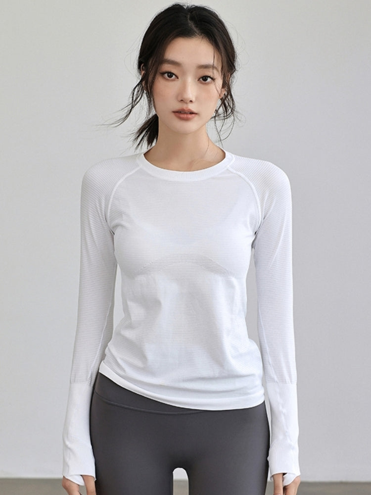 Women's Autumn & Winter Yoga Comprehensive Training Top High-Elastic Slim Crew Neck Quick-Dry Sports Long-Sleeve Fitness Clothes